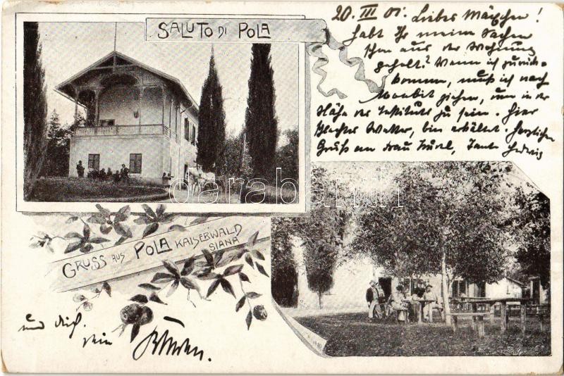 1901 Pola, Pula; Kaiserwald / Siana / Sijana Forest, restaurant. Art Nouveau, floral (EK)