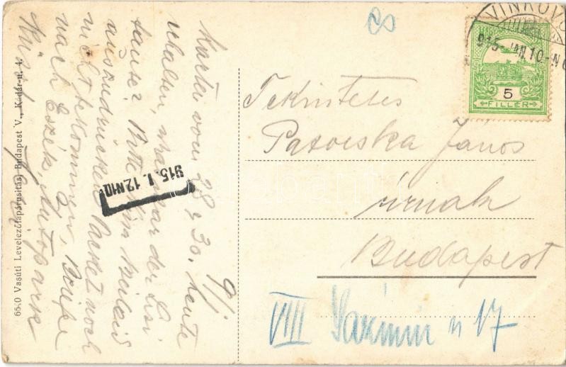 1915 Vinkovce, Vinkovci; Kolodvor / Vasútállomás, vonat / Bahnhof / railway station, train