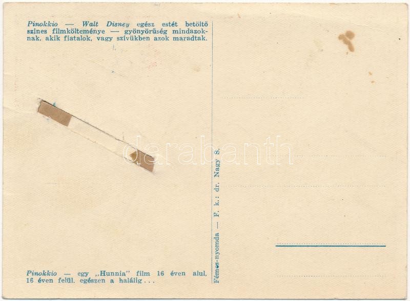 https://www.darabanth.com/en/32-Major-auction/32.1/Postcards/Disney~13791/Walt-Disney-oriasfilm-Pinokkio-Hunniafilm-mechanikus-lap-hianyos-Pinocchio-Hungarian-edit~II2046977