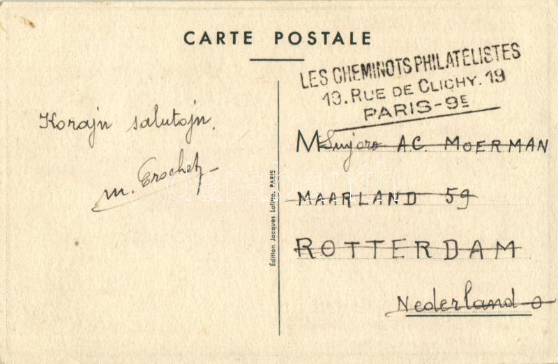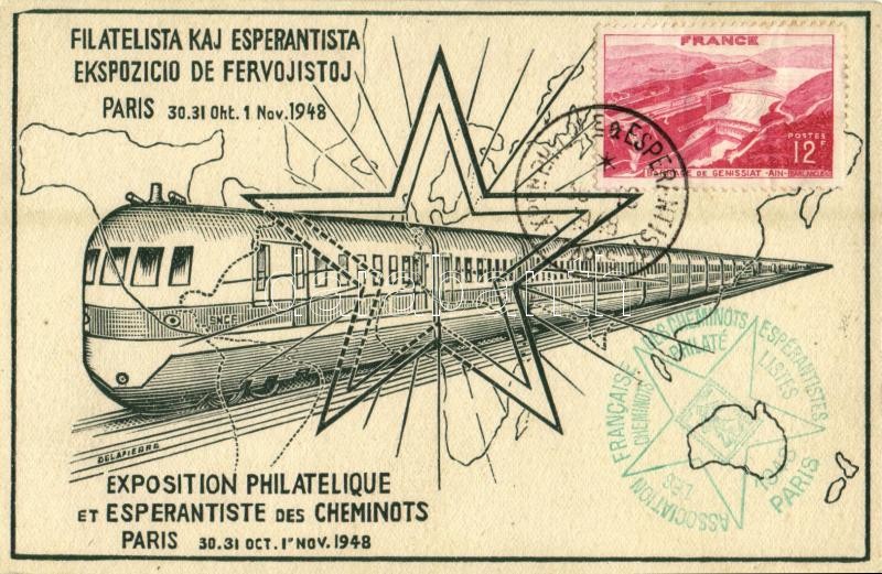1948 Paris, Filatelista Kaj Esperantista Ekspozicio de Fervojistoj / Exposition Philatelique et Esperantiste des Cheminots / Philatelist and Esperantist Railway Exhibition. So. Stpl s: Delapierre (EK)
