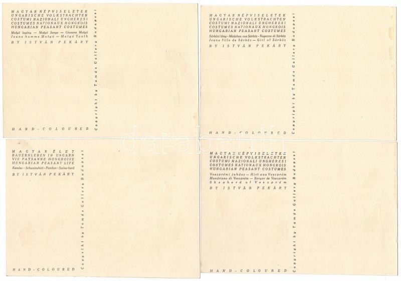 Description: Magyar Népviseletek - 20 darab használatlan folklór kézzel-színezett művészlap. Pekárny István szignóval. Tamás Galéria kiadása, kitűnő minőség / Hungarian folklore - 20 unused pre-1945 hand-coloured art postcards signed by István Pekárny. In excellent condition