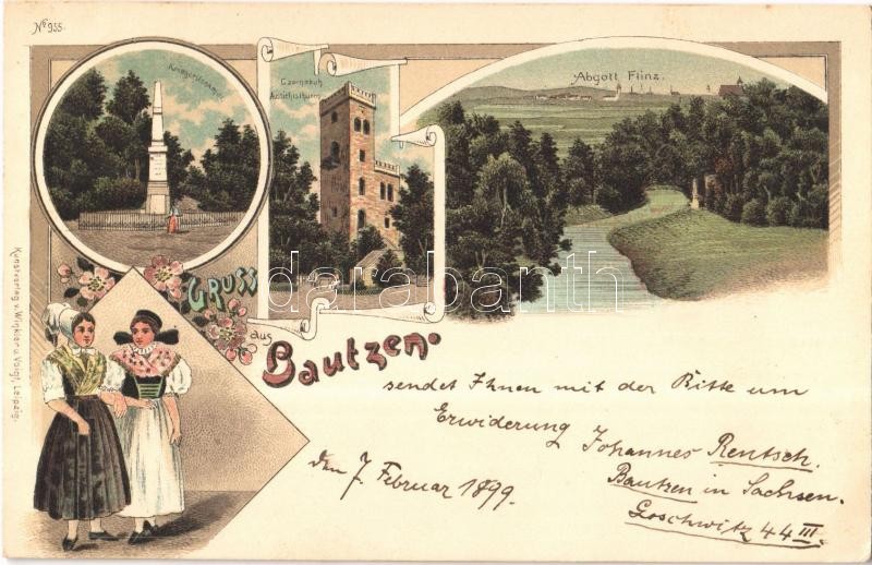 1899 Bautzen, Abgott Flinz, Kriegerdenkmal, Czorneboh Aussichtsturm / ...
