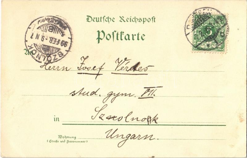 1899 Bautzen, Abgott Flinz, Kriegerdenkmal, Czorneboh Aussichtsturm / military heroes monument, lookout tower, folklore. Winkler & Voigt Art Nouveau, floral, litho