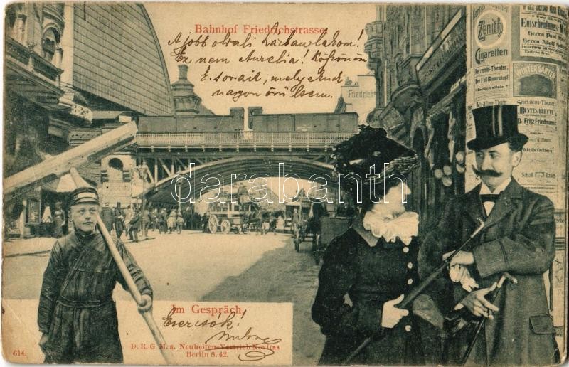 1904 Berlin, Bahnhof Friedrichstrasse, Im Gespräch / railway station, ...