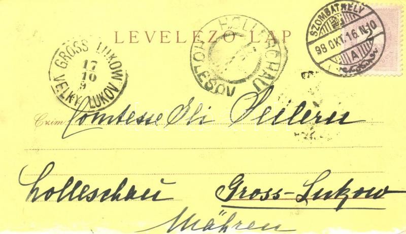 Description: 1898 Szombathely, Steinamanger; Felső villák, Halász, Greisinger és Rauscher villák, Frigyes főherceg laktanya. Özv. Fekete Istvánné kiadása, Art Nouveau, floral, litho (EK)