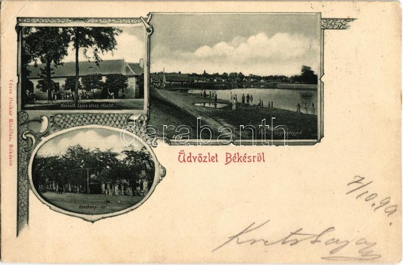 1899 Békés, Kossuth Lajos utca, Páris cigány negyed, Széchenyi tér. Véver Oszkár kiadása, Art Nouveau (EK)