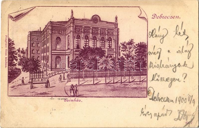 1900 Debrecen, színház. Pongrácz Géza kiadása, litho (EK)