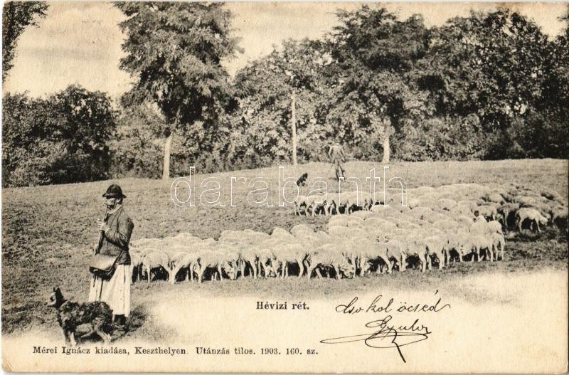 1903 Hévíz, Hévízi rét juhásszal és nyájjal. Mérei Ignácz kiadása 160.