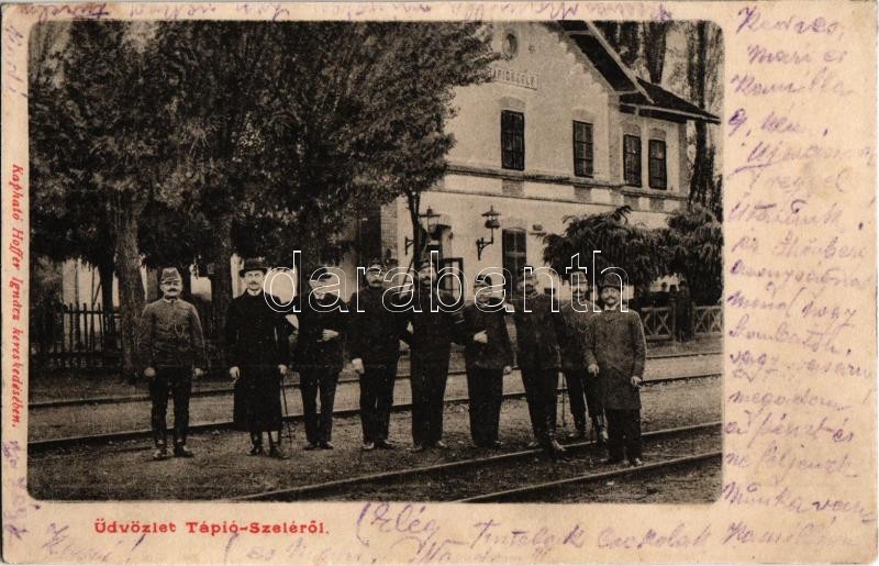 1905 Tápiószele, vasútállomás, főurak és vasutasok társasága. Kapható Hoffer Ignác kereskedésében (vágott / cut)
