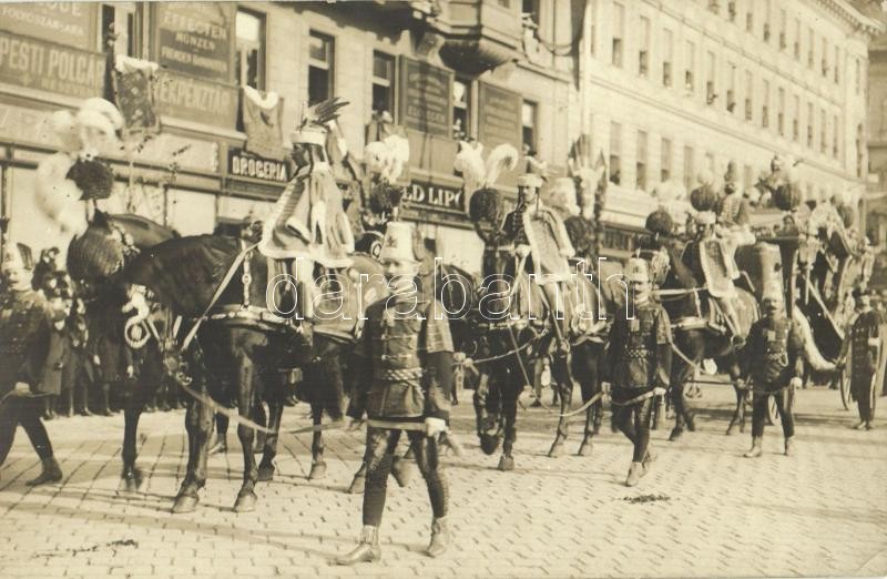 1907 Budapest, Rákóczi és bujdosók hamvainak hazahozatala, főhivatalnokok felvonulása díszmagyar öltözetben. photo (EK)