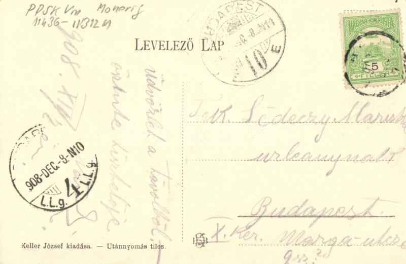 1908 Monor, Községháza, Kossuth szobor, szekerek hordókkal. Keller József kiadása