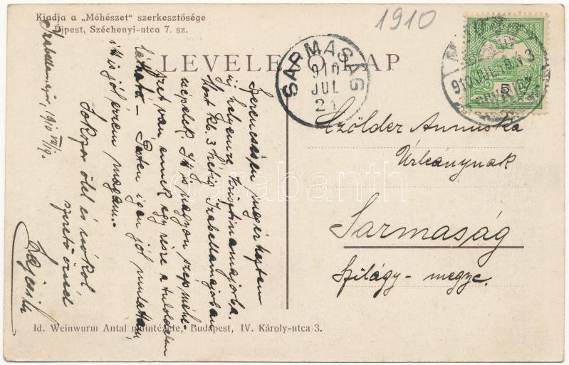 https://www.darabanth.com/en/32-Major-auction/32.1/Postcards/Hungary~13725/1910-Moson-Izabellamajor-Nyerges-Mihaly-meheszete-mehkaptarokkal-Kiadja-a-Meheszet-szerke~II2038558