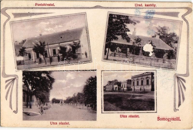 1911 Somogyszil, postahivatal, uradalmi kastély, utcaképek. Art Nouveau, Bergl Simon kiadása (felületi sérülés / surface damage)