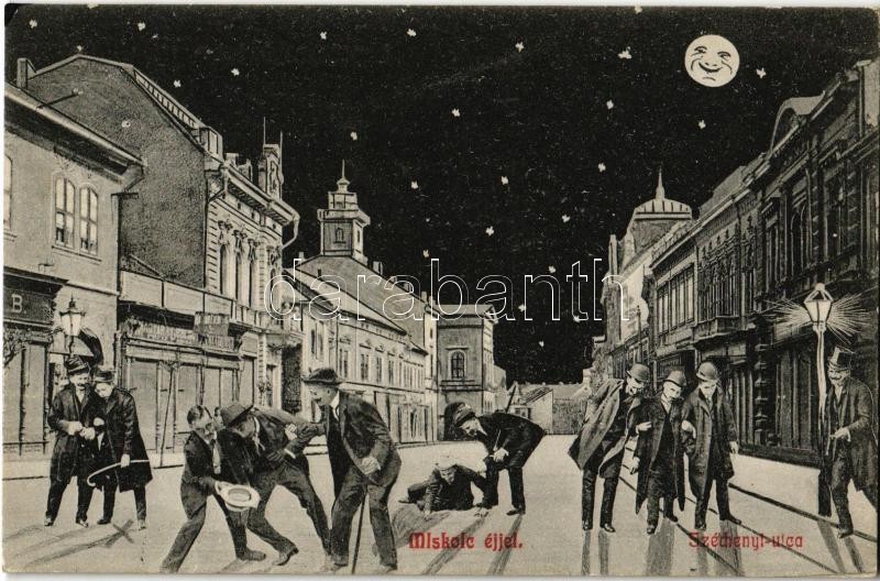 1912 Miskolc, Széchenyi utca éjjel. Részeges humoros montázs. Grünwald...