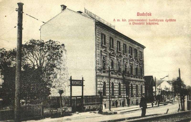 1916 Budapest XXII. Budafok, M. kir. pincemesteri tanfolyam épülete a Dunáról tekintve, Reichardt üzlete (szakadás / tear)