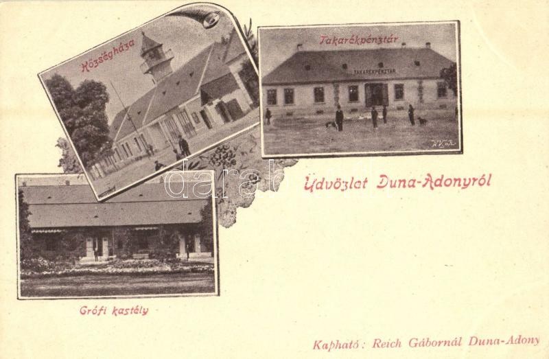 Adony, Duna-Adony; takarékpénztár, községháza, Gróf Zichy Nándor kastély. Reich Gábornál kapható, Art Nouveau (EK)