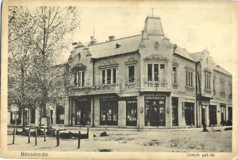 https://www.darabanth.com/en/32-Major-auction/32.1/Postcards/Hungary~13725/Bacsalmas-Ullrich-palota-Szt-Istvan-gyogyszertar-A-Erno-uzlete-Scheer-Hermanne-kiadas~II2020658