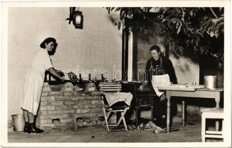 Balatonszárszó, Berberich János Vén Diófa csárdája, mosogató asszonyok. Dévai fotó