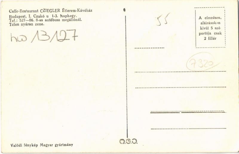 https://www.darabanth.com/en/32-Major-auction/32.1/Postcards/Hungary~13725/Budapest-I-Naphegy-Cziegler-Jeno-etterme-es-kavehaza-kerthelyiseg-Czako-utca-1-3-EK~II2046595