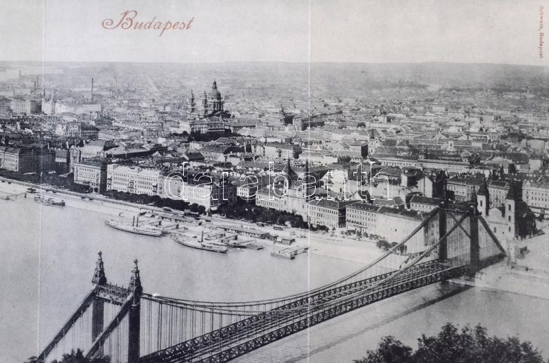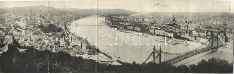 Budapest XI. Gellérthegy, Vár, Lánchíd, Erzsébet híd. 5-részes kihajtható panorámalap / 5-tiled foldable panoramacard (EK)