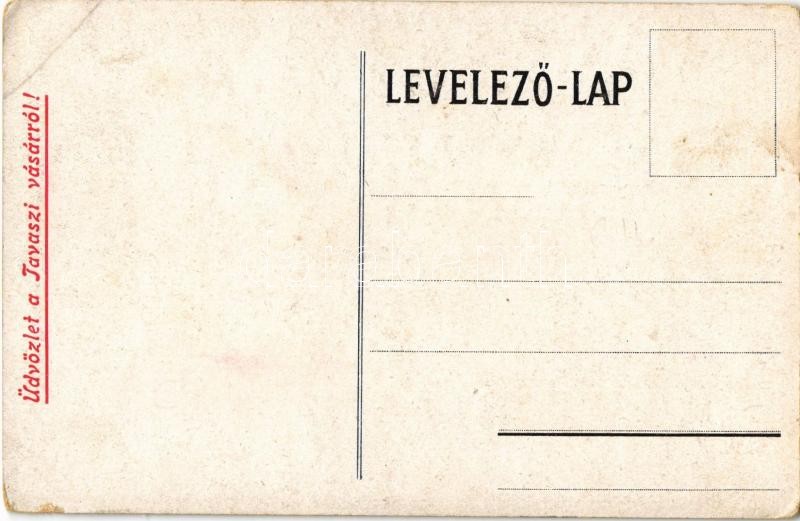 Budapest XIII. Krayer E. és Társa Festékudvar, villamos. Váci út 34. litho (Hátoldalon: Üdvözlet a Tavaszi vásárról!) (kopott sarkak / worn corners)