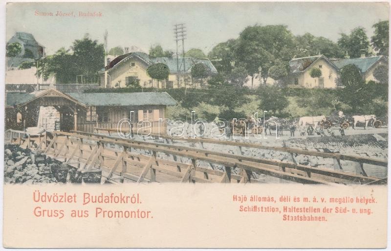 Budapest XXII. Budafok (Promontor), Hajóállomás, déli és MÁV megállóhelyek, vasútállomás. Simon József kiadása