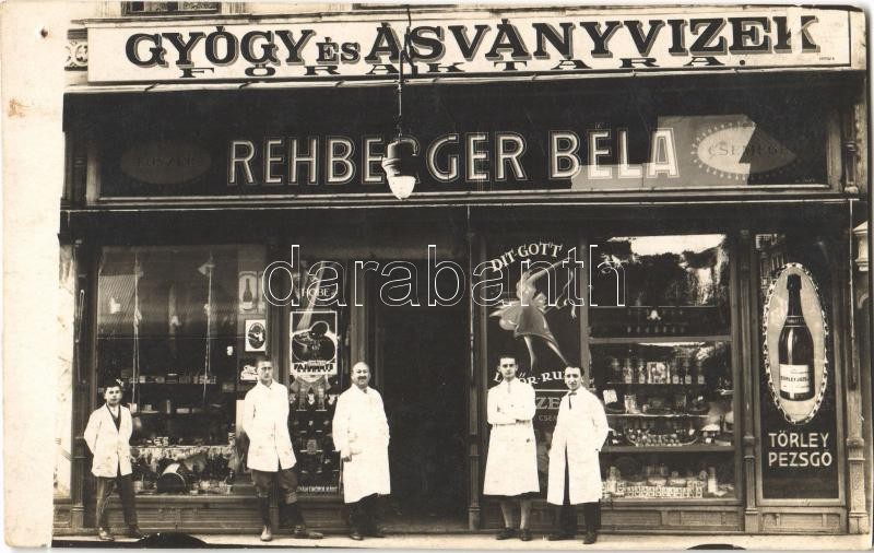Győr, Rehberger Béla csemege üzlete, Gyógy és Ásványvizek főraktára, Törley pezsgő reklám. Király utca 9. photo