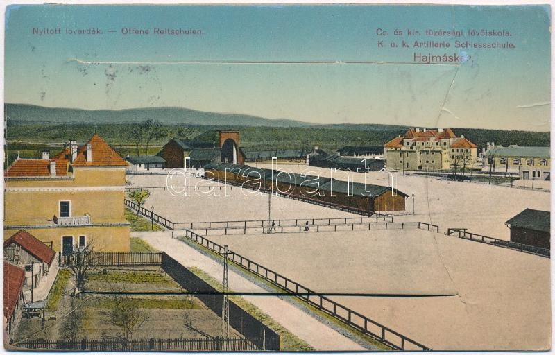 Hajmáskér, Cs. és kir. tüzérségi lövőiskola, nyitott lovardák. leporel...