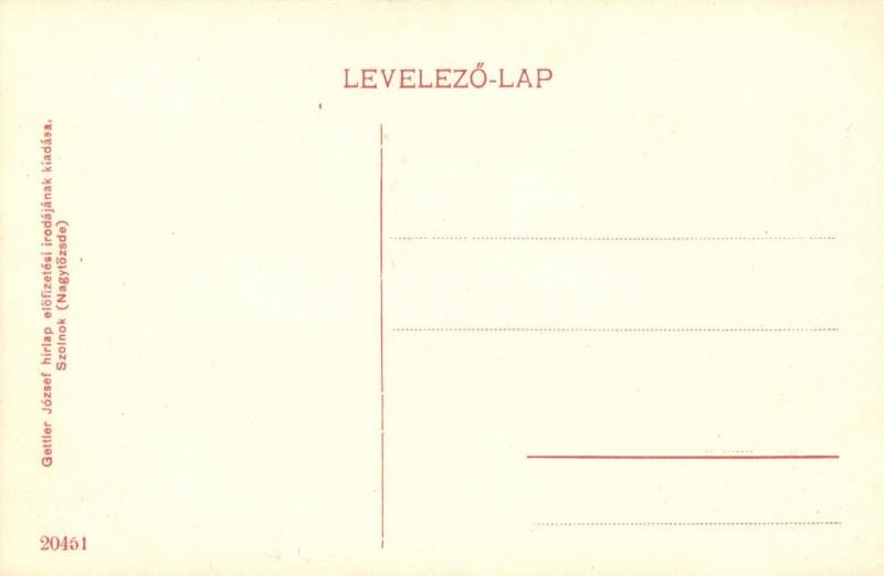 Description: Szolnok, Kossuth tér, piac, Schvarcz Ernő és Schwarcz Zsigmond üzlete, Mezőgazdasági és varrógép üzlet. Gettler József hírlap előfizetési irodájának kiadása 20451.