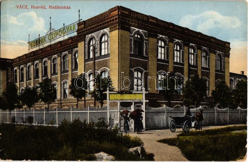 Vác, Honvéd hadikórház, Kobrak Cipőgyár, lovaskocsi. Gulyás Antalné ki...
