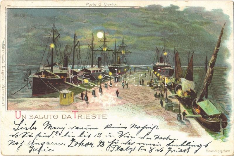 1899 Trieste, Trieszt; Molo S. Carlo / Port at night. F. Schmuck Art N...