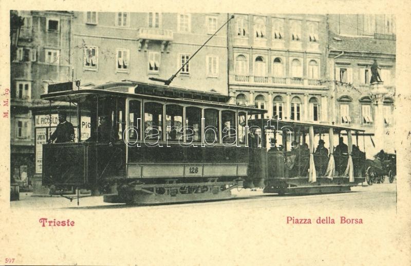 1901 Trieste, Trieszt; Piazza della Borsa / square with tram