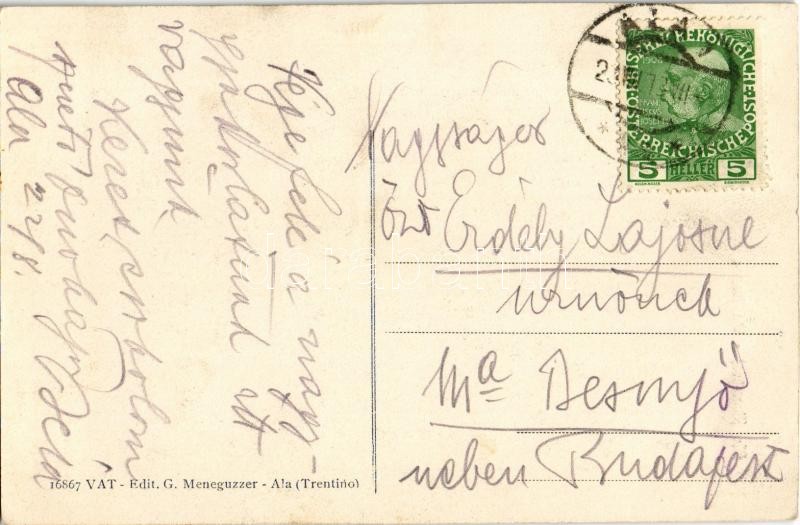 1913 Ala (Trentino, Südtirol), Via Nuova, I.R. Posta e Telegrafo / str...