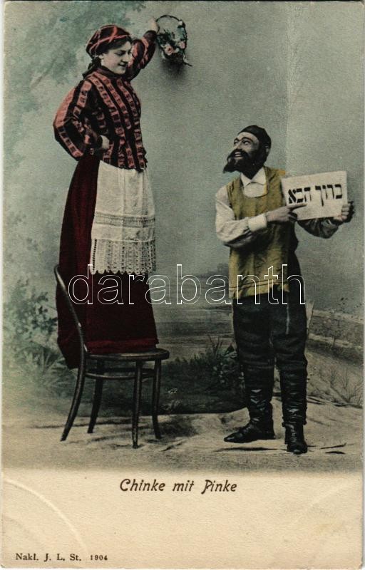Chinke mit Pinke. nakl. J.L. St. 1904 / Jewish couple with Hebrew text...