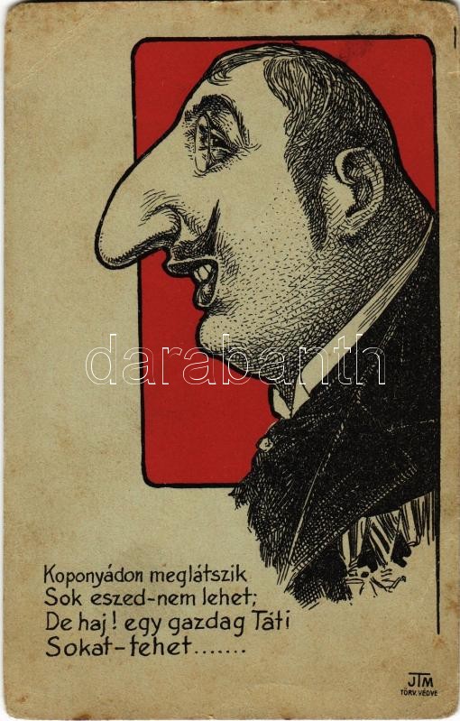 Koponyádon meglátszik sok eszed nem lehet; de haj! egy gazdag táti sokat tehet... / Hungarian Jewish mocking art postcard, Judaica (EB)