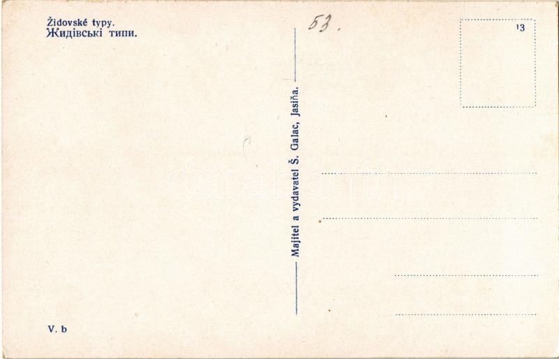 Kőrösmező, Jaszinya, Jasina, Yasinia; Kárpátaljai zsidó típusok / Zidovské typy. S. Galac / Transcarpathian Jewish types, Judaica