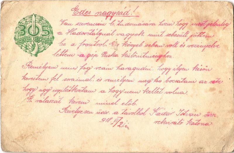 https://www.darabanth.com/en/32-Major-auction/32.1/Postcards/Militaria~13801/1918-305-Honved-Gyalogezred-sapkajelvenyenek-a-kepe-Cap-badge-of-the-305th-Hungarian-Infantry~II2045758