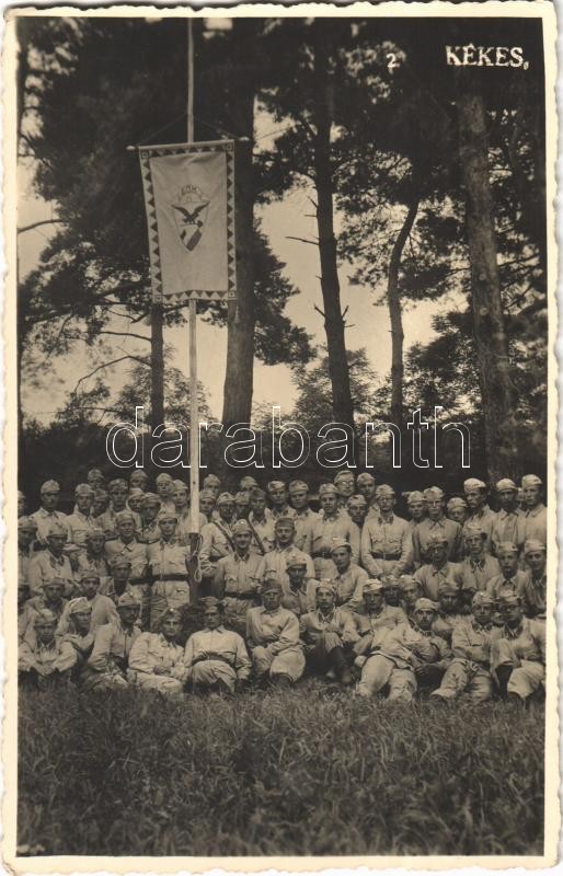 Description: 1941 Kékes, Egyetemi és Főiskolai Hallgatók Önkéntes Nemzeti Munkaszolgálata, Ond Vezér 59. sz. tábor csoportképe / Hungarian soldiers of the National Voluntary Service for University and College Students. photo (ragasztónyom / gluemark)