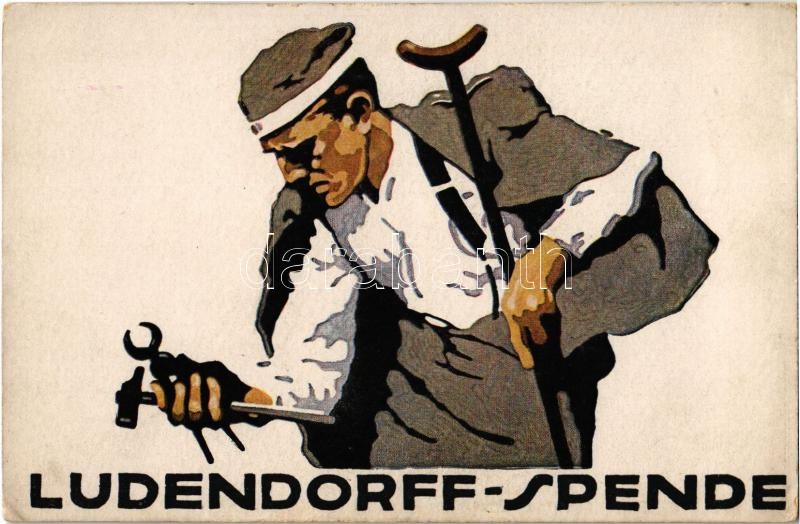 Ludendorff-Spende für Kriegsbeschädigte / Ludendorff donation for disabled veterans. WWI German military propaganda art postcard