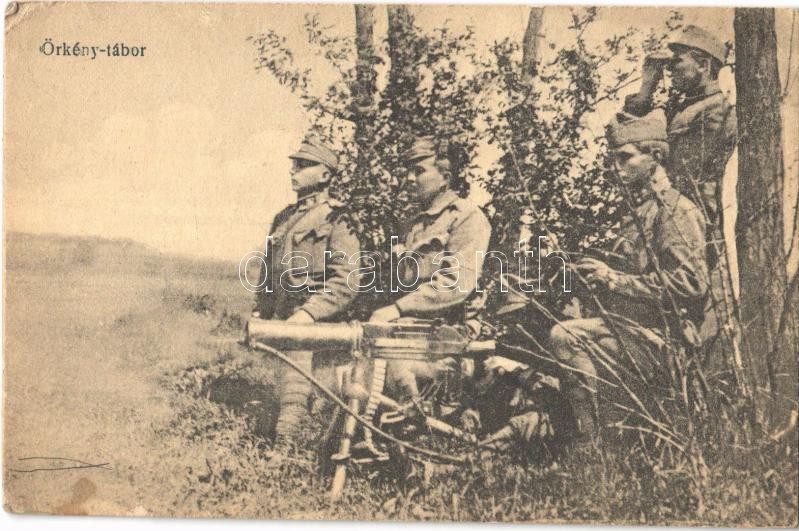 Örkény-tábor, osztrák-magyar katonák géppuskával (Schwarzlose?). Herzog Mór kiadása / K.u.K. (Austro-Hungarian) military, sodliers with machine gun (Schwarzlose?) (EK)