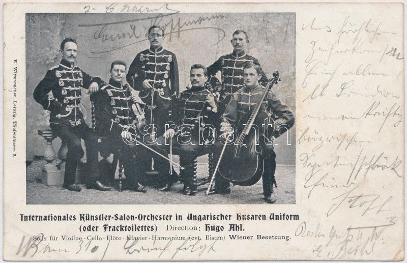 1903 Internationales Künstler-Salon-Orchester in Ungarischer Husaren U... https://www.darabanth.com/en/32-Major-auction/32.1/Postcards/Music-Musicians~13822/1903-Internationales-Kunstler-Salon-Orchester-in-Ungarischer-Husaren-Uniform-oder-Fracktoilettes-~II1949174