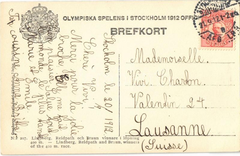 1912 Stockholm, Olympiska Spelens Officiella. Nr. 207. Lindberg, Reidp... https://www.darabanth.com/en/32-Major-auction/32.1/Postcards/Olympic-Games~13809/1912-Stockholm-Olympiska-Spelens-Officiella-Nr-207-Lindberg-Reidpath-och-Braun-vinnare-i-lopni~II2039303