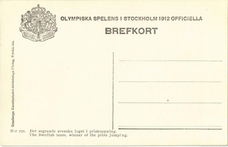 1912 Stockholm, Olympiska Spelens Officiella. Nr. 270. Det segrande sv... https://www.darabanth.com/en/32-Major-auction/32.1/Postcards/Olympic-Games~13809/1912-Stockholm-Olympiska-Spelens-Officiella-Nr-270-Det-segrande-svenska-laget-i-prishoppning-1~II2039277