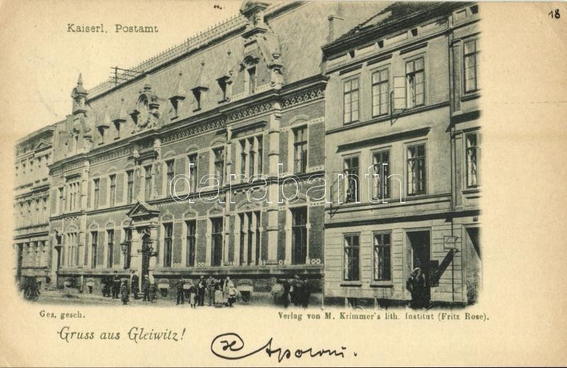 https://www.darabanth.com/en/32-Major-auction/32.1/Postcards/Poland~13765/1898-Gliwice-Gleiwitz-Kaiserl-Postamt-post-office-EK~II2035960