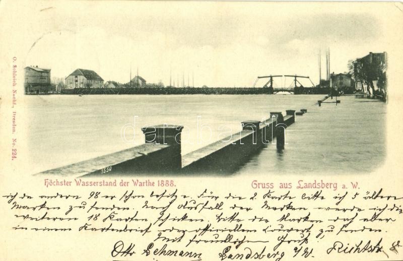 1898 Gorzów Wielkopolski, Landsberg an der Warthe; Höchster Wasserstand der Warthe 1888 / Highest water level of Warta river from 1888 (EK)