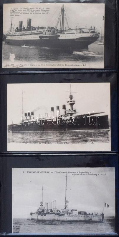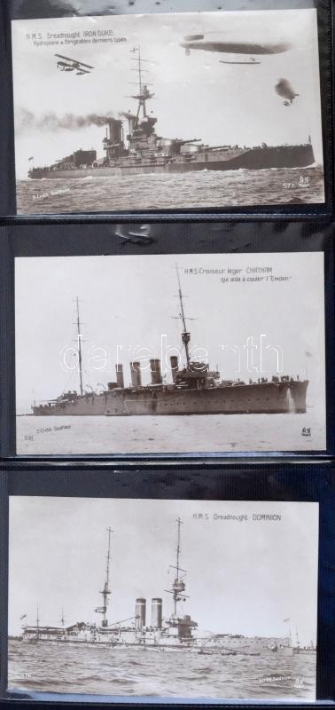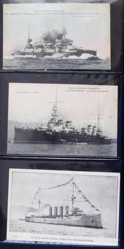 45 db RÉGI motívum képeslap albumban: angol és francia hadihajók / 45 ...