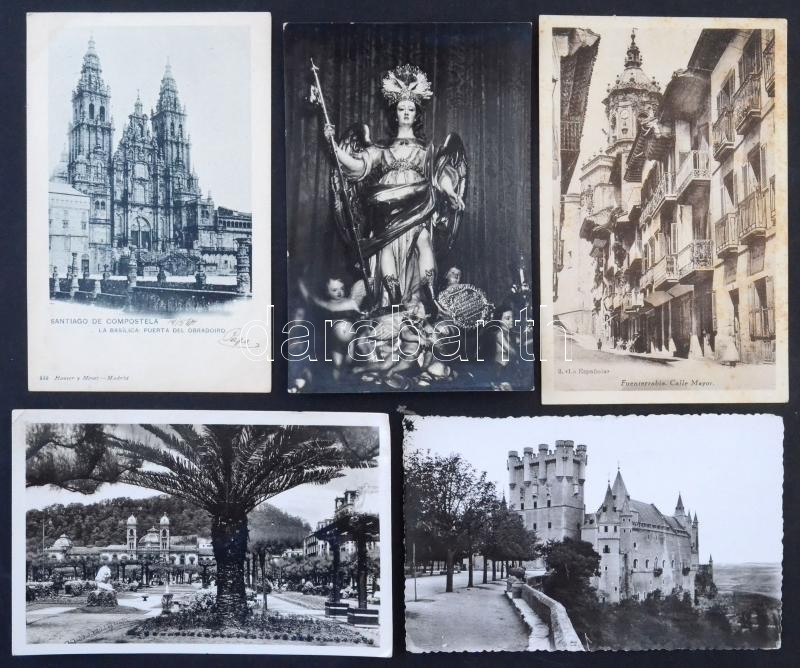 Kb. 1000 db 1960-as évek előtti spanyol képeslap dobozban. Vegyes minőség / Cca. 1000 pre-1960 Spanish postcards in a box. Mixed quality