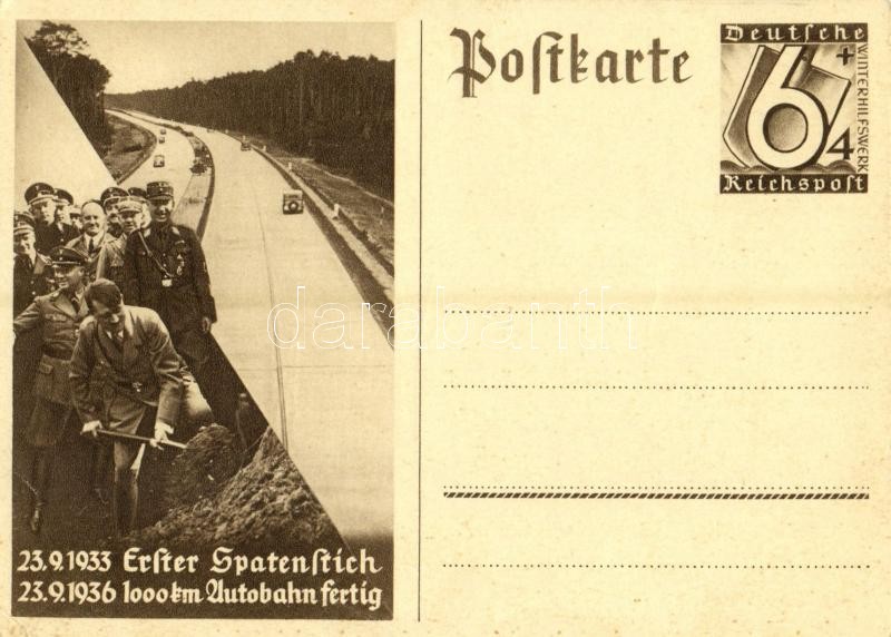 1933 Erster Spatenstich - 1936 1000 km Autobahn fertig / 1933 First Gr... https://www.darabanth.com/en/32-Major-auction/32.1/Postcards/Propaganda-politics~13810/1933-Erster-Spatenstich-1936-1000-km-Autobahn-fertig-1933-First-Groundbreaking-1936-1000-km-hi~II2047051