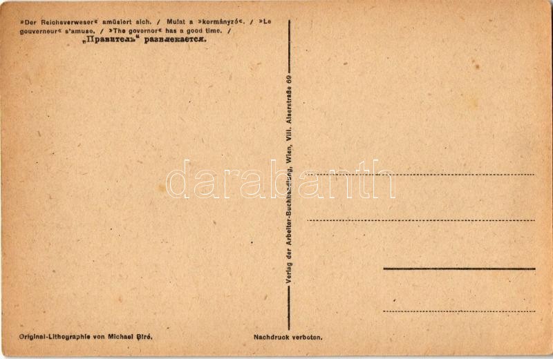Mulat a "kormányzó". Fehérterror Magyarországon. Verlag der Arbeiter-Buchhandlung / White Terror in Hungary, left-wing propaganda card s: Bíró