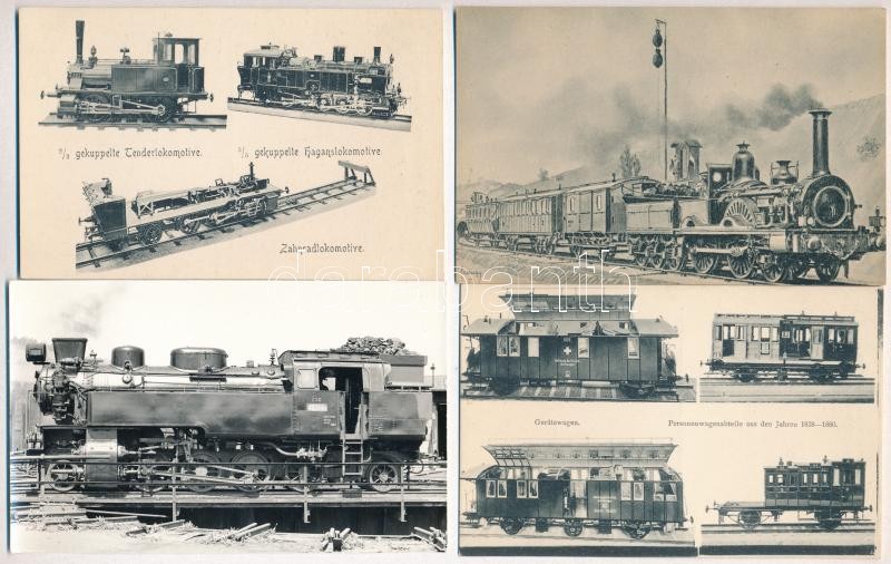Description: 18 db RÉGI csehszlovák vasúti motívumlapok, gőzmozdonyok (főleg Alfred Luft fotói) / 18 pre-1950 Czechoslovakian railway motive postcards, locomoties (mostly photos by Alfred Luft)